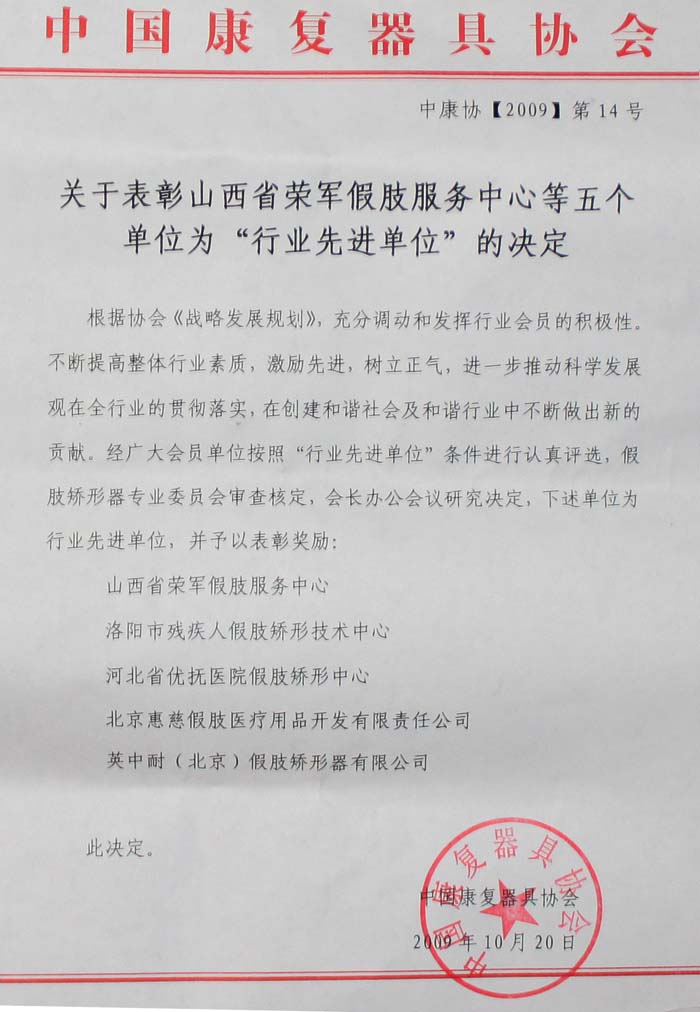 兰州英中耐 - 频道中心 - 公司荣誉,假肢,兰州假肢,甘肃假肢,兰州英中耐,甘肃英中耐,假肢安装,兰州假肢厂,假肢矫形器,大腿假肢,假肢视频,手,假肢穿戴,假肢图片
